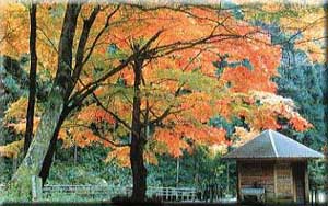 蓬莱山は、日本三蓬莱の一つと言われ、約1200年前に勝道上人によって開かれた霊山です。春には新緑にあふれ、秋には鮮やかな紅葉を見せてくれます。また、蓬莱山の麓を流れる大戸川に沿って歩くと、幾本もの滝が神秘的な姿で出迎えてくれます。なかでも、「幻の滝」と呼ばれる「三滝」は、三段に連なり、苔むした岩間から落下する飛沫は、厳粛な世界を創り上げています。